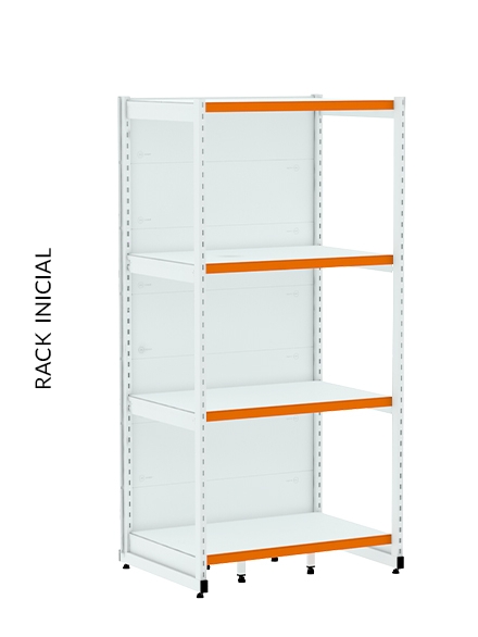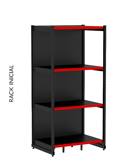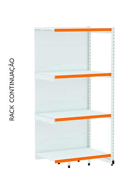 Os racks de paredes são ideais para serem utilizados nas extremidades do estabelecimento. Rack Inicial possui 2 colunas, indispensável para iniciar uma fileira de gôndolas. Rack Continuação possui 1 coluna, utilizada para dar continuidade à fileira de racks e não pode ser montado individual.